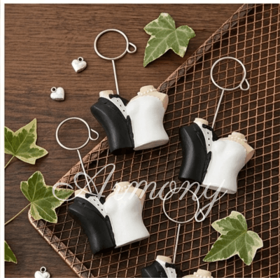 Le marque-place mariage buste mariés avec tige est un accessoire à la fois pratique et décoratif, idéal pour sublimer vos tables de réception. Avec son design représentant un couple de mariés, il apporte une touche romantique et élégante à votre décoration.